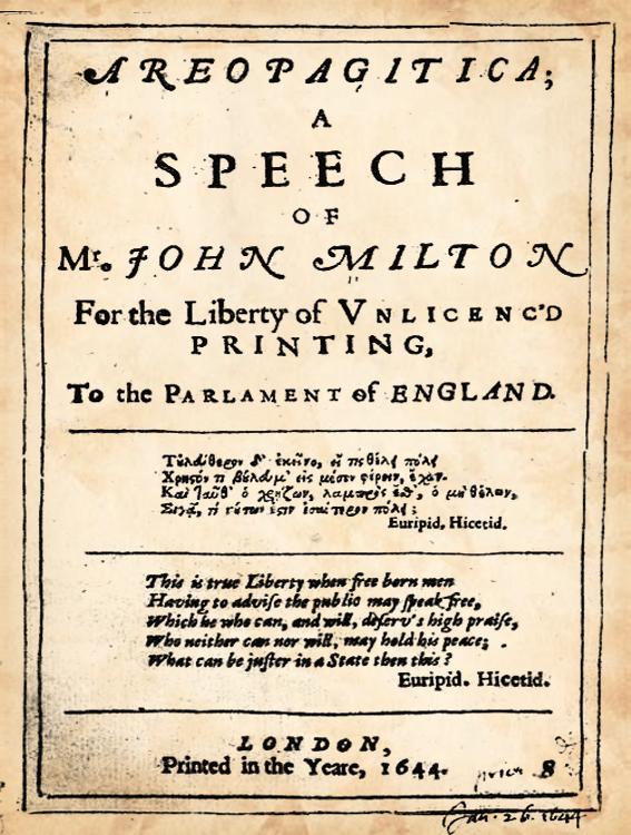 Esta não é a primeira vez que se tentam limitar os fluxos informacionais emergentes de novas tecnologias de comunicação. Após a invenção da imprensa, as classes dominantes da Europa implementaram duras leis de censura. Um exemplo entre muitos é a da Ordem de Licenciamento Inglesa de 1643, que ordenou a prisão de quem imprimia livros críticos do governo. Mas o poder da imprensa provou ser demasiado forte e os seus efeitos não puderam ser contidos por mandatos das classes dominantes. Logo em 1644 John Milton publicou “Areopagitica, Um discurso do Sr. John Milton pela liberdade de impressão não licenciada, para o Parlamento da Inglaterra”, um texto que se opunha eloquentemente ao licenciamento e à censura e que está entre as defesas filosóficas do direito à liberdade de expressão mais influentes e apaixonadas da História.