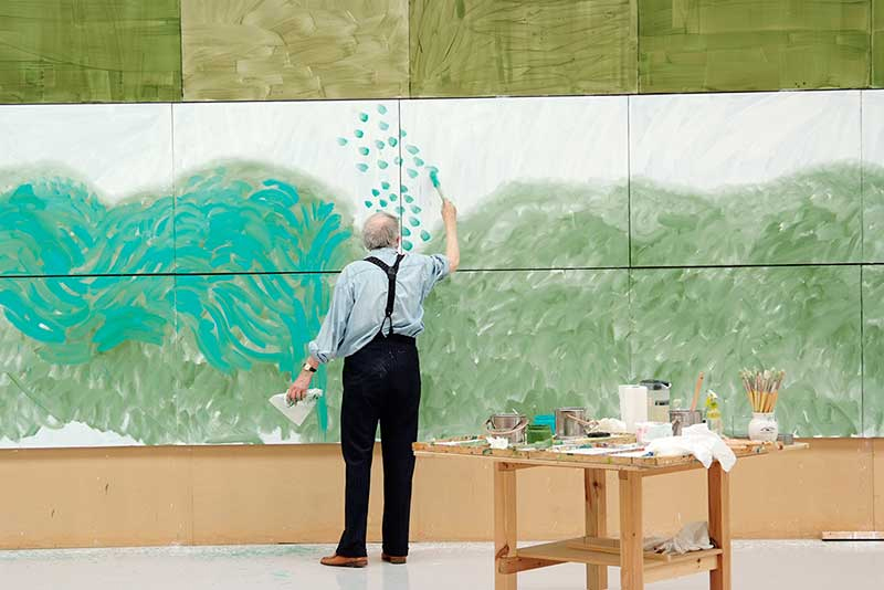 Cruzando referências que oscilam entre Claude Monet e Edward Hopper, entre Francis Bacon e Pablo Picasso, entre Vincent van Gogh e Andrew Wyeth (outro dos últimos grandes mestres, mas este já falecido); Hockney não tem medo do cliché, porque toda a arte é construída sobre convenções. São as convenções que fazem da arte a suprema forma de comunicação. São as convenções – os lugares comuns – que permitem o olhar original, a ruptura, a inovação, os modernismos.