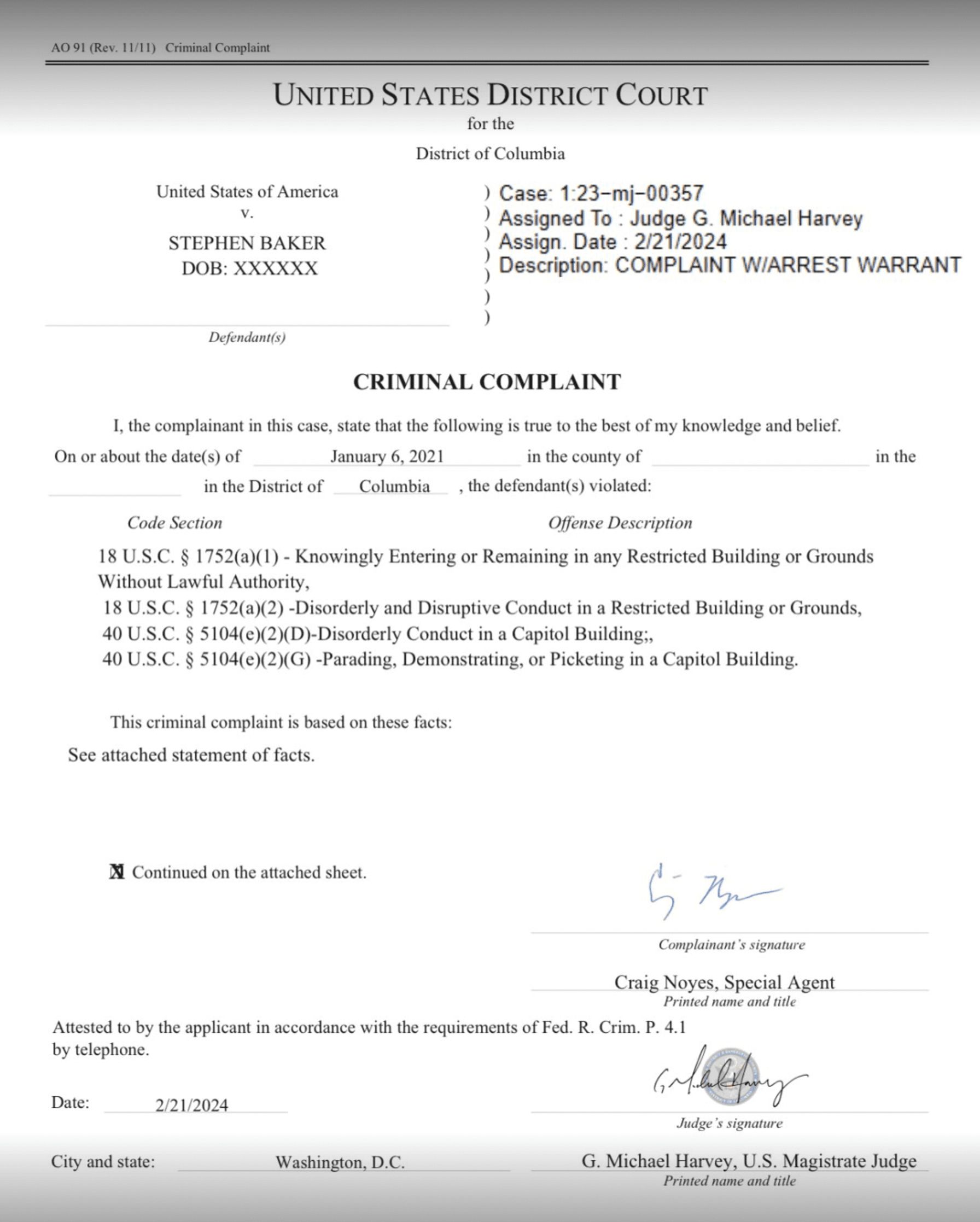 Baker anunciou em Dezembro que sabia que o FBI e o Departamento de Justiça (DOJ) dos EUA iriam acusá-lo pelo seu trabalho de investigação sobre o 6 de Janeiro e os advogados que representam Baker disseram em Janeiro que o Departamento de Justiça poderia estar a orquestrar uma “retaliação” contra Baker por causa das suas reportagens.